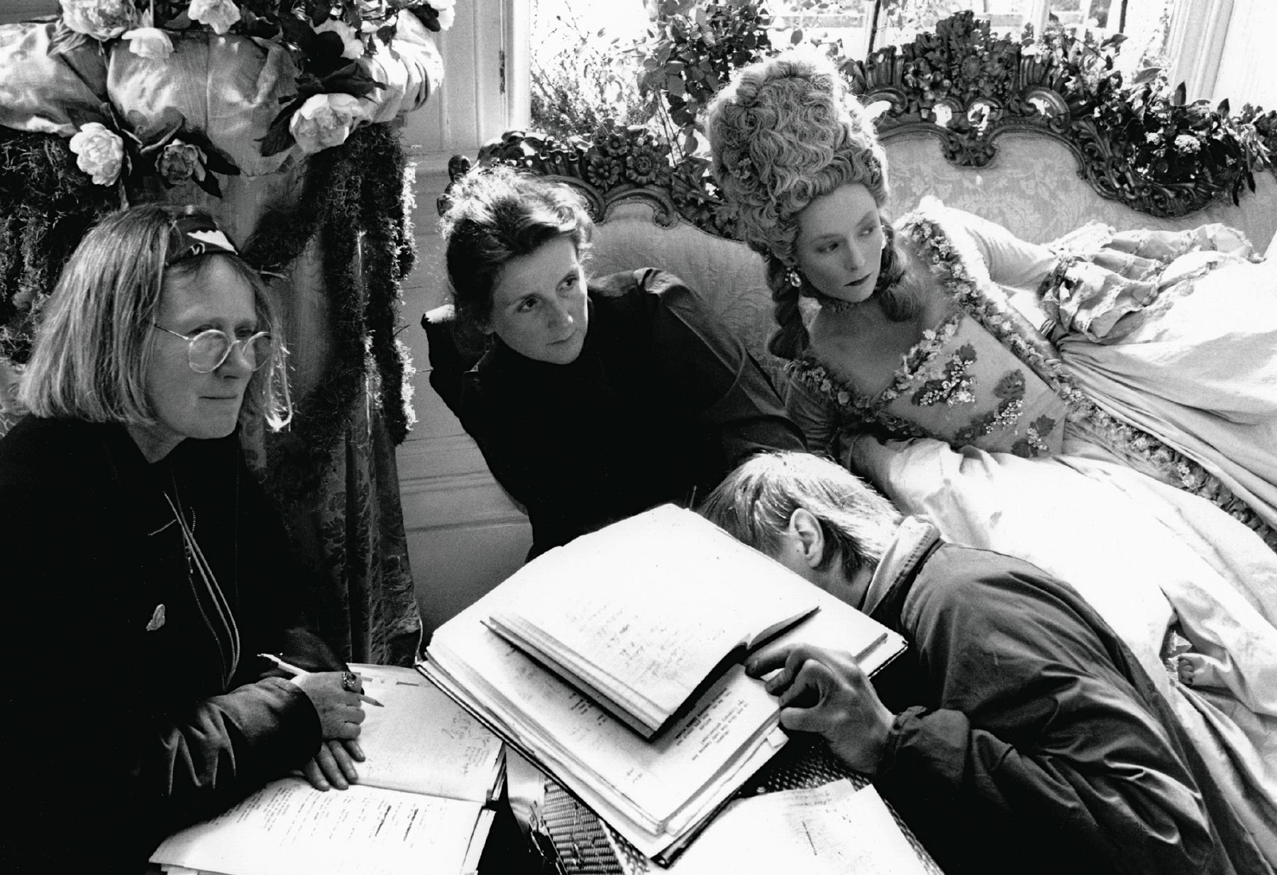 Based on a book and eight years of research, the script for Orlando was constantly revised. Here, Penny Eyles, Sally Potter and Tilda Swinton gather between scenes.